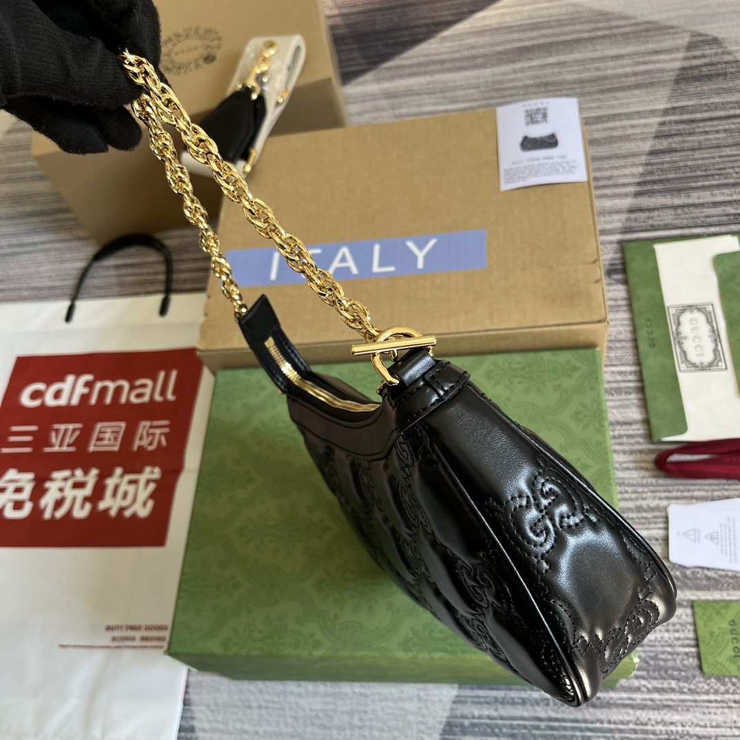 【Comes with full boutique green packaging】‼️ New GG Matelassé leather handbag! Reinterpreting the brand’s iconic material with a soft texture. The textured GG pattern vividly portrays a range of handbags, including this black leather bag. The front features double G hardware, injecting the brand’s signature essence into the design. Black GG Matelassé leather, gold-tone hardware, double G, zip closure. Two detachable shoulder straps: ivory white nylon and gold-tone metal. Model: 735049. Dimensions: 25 (W) x 15 (H) x 8 cm (D). Color: Black embossed.