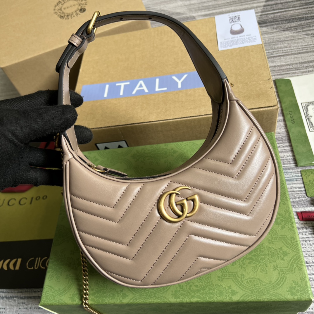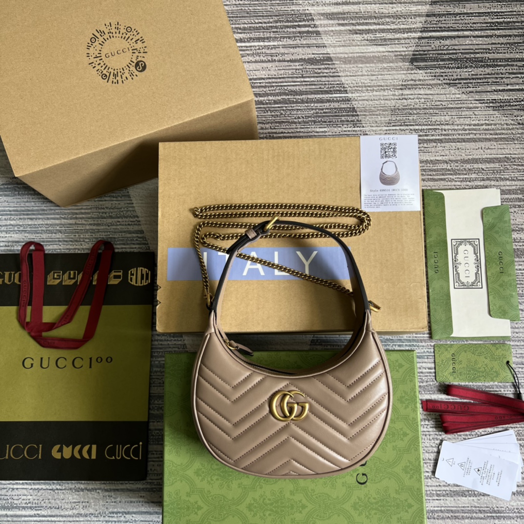 【Comes with full boutique green packaging】🐯 This mini handbag features a crescent-shaped silhouette and luxurious black leather, exuding a rich vintage style. Vintage elements are blended with classic designs and fashionable details, presenting a refreshed design that transcends time. Every detail reflects the brand’s deep fascination with its past, and this small accessory is no exception. It is made of boutique-quality, soft, natural grained cowhide and high-end, smooth, glossy antique bronze hardware. Model number: 699514. Dimensions: 21x11x5cm. Color: Milk tea color/Original leather.