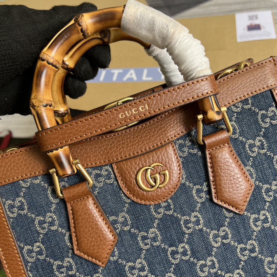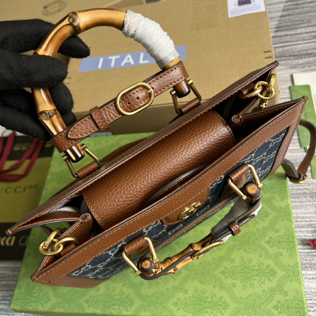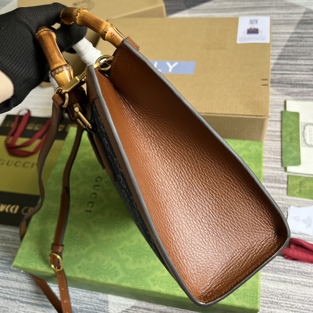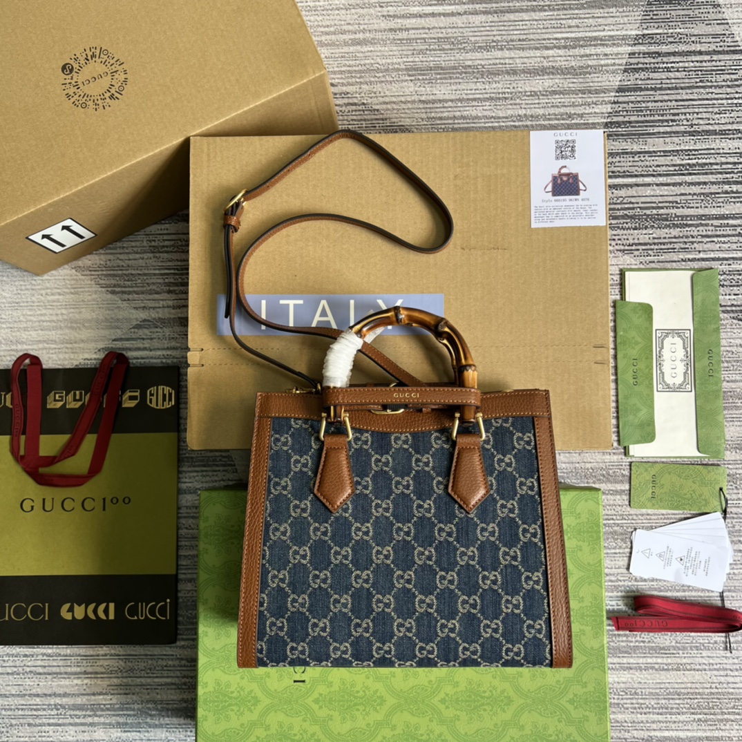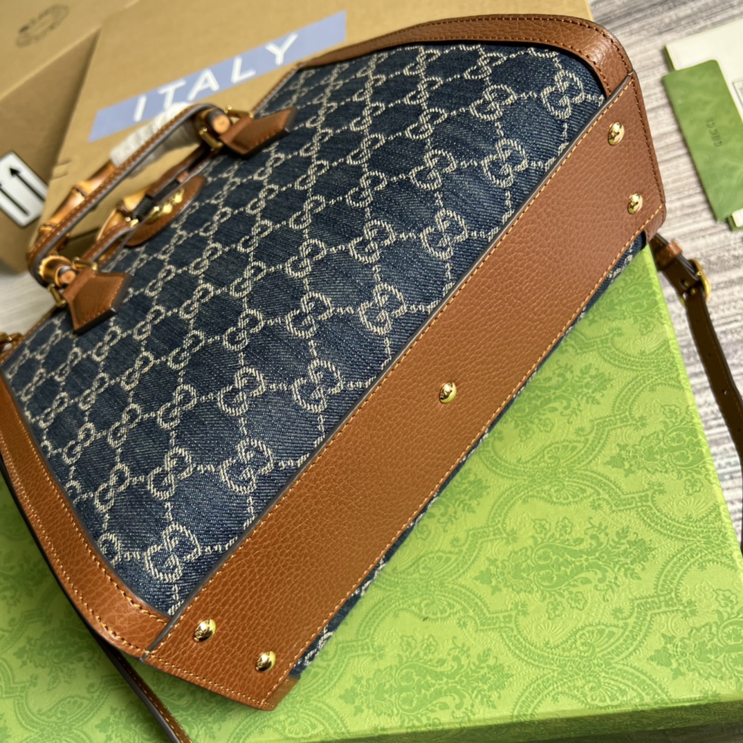 【Comes with full boutique green packaging】💞Original leather bamboo handle medium-sized Gucci Aria collection reinterprets a classic element with modern techniques. Bamboo is one of Gucci’s classic elements, appearing in various collections since the 1940s. After more than eighty years of development and evolution, this classic element is combined with black leather and presented in a fresh way on this small handbag. The bag also comes with two interchangeable shoulder straps—the smooth leather strap exudes an elegant and classic feel, while the striped webbing strap highlights the brand’s strong heritage. Model: 660195. Dimensions: 27*24*11cm. Color: Blue denim.
