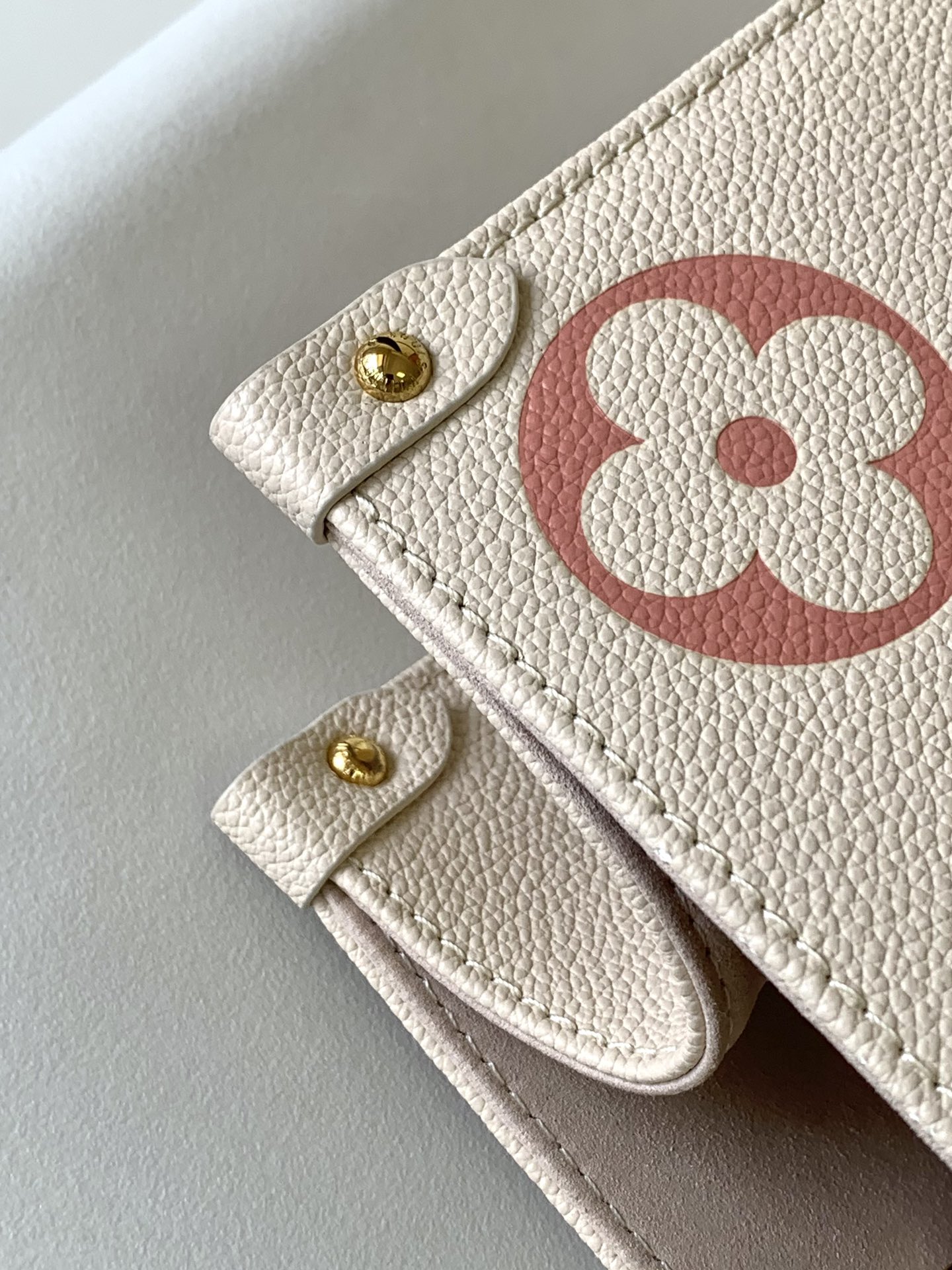 Elevate your style with the M21575 Cream White & Pink Silkscreen Luxury Handbag, designed with a refined blend of elegance and modern fashion aesthetics.