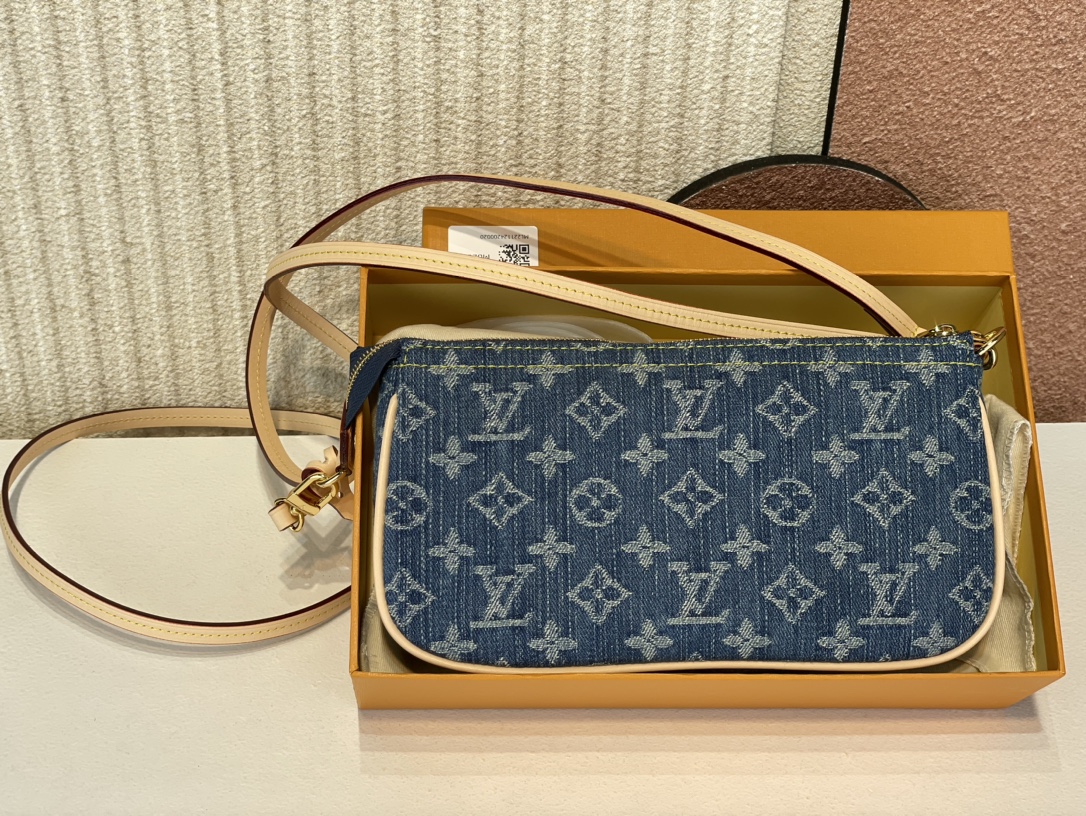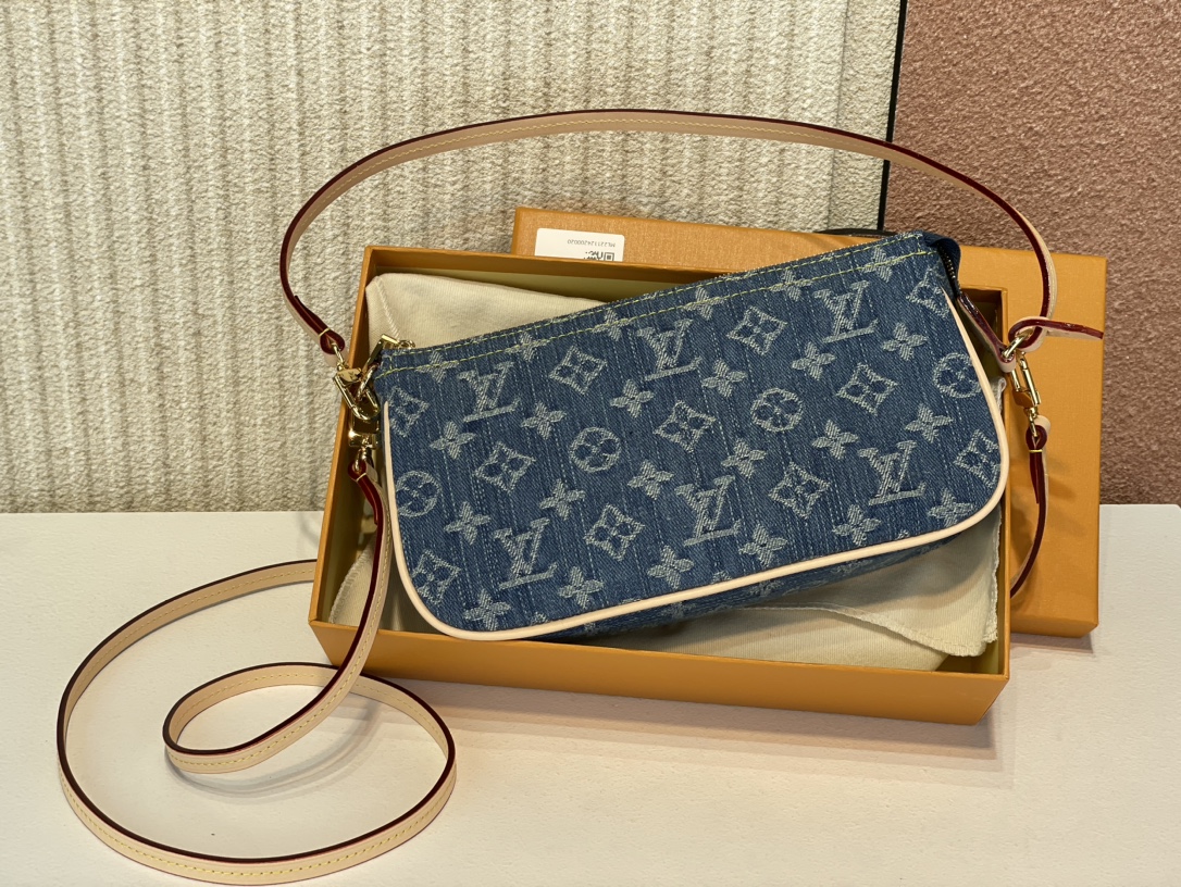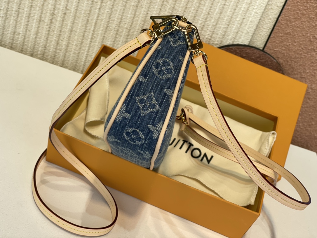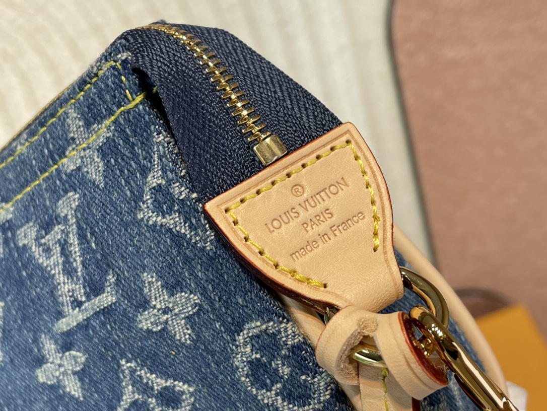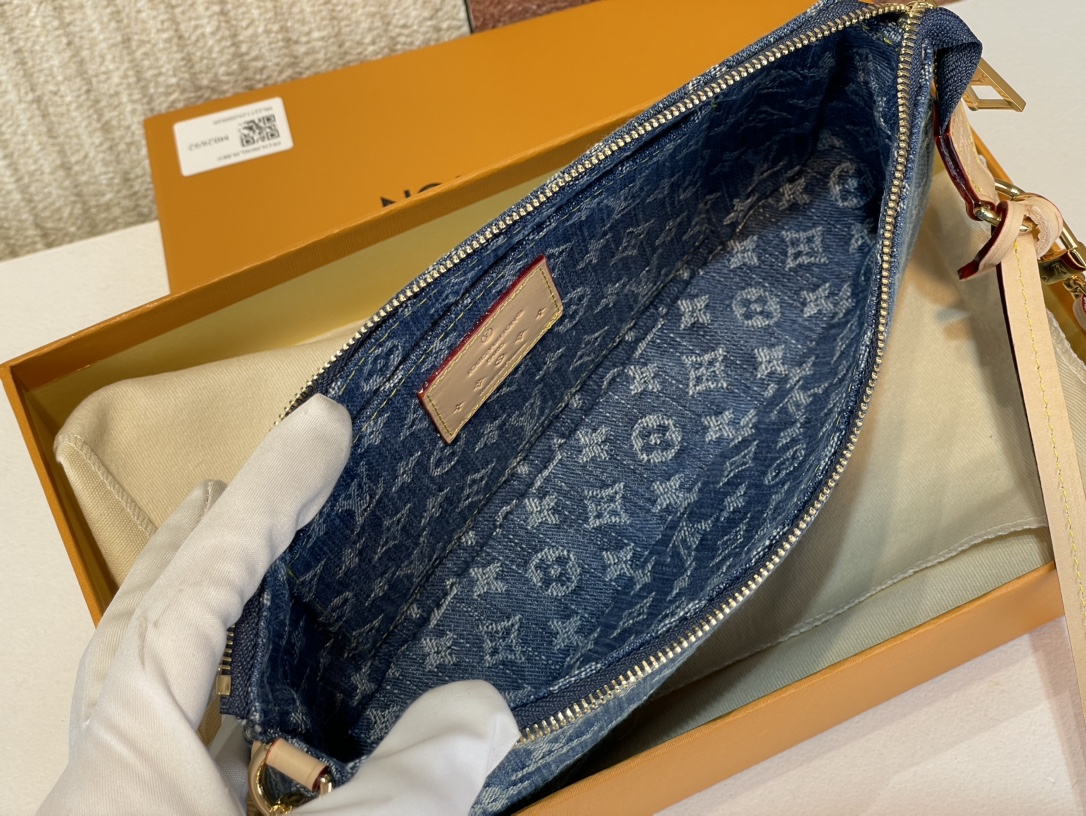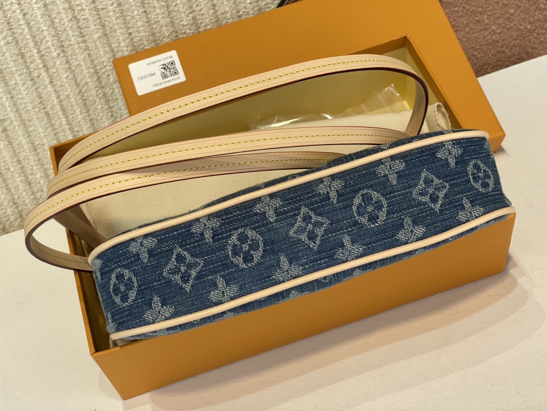 Denim Mahjong Bag M40712 82692 Blue Denim Crossbody Bag: The leather is incredibly soft and it’s also super spacious, holding a large amount of items like a wallet, phone case, lipstick, tissues, and car keys—all in one bag! [Can be used as a clutch, crossbody bag, or shoulder bag; multi-functional, versatile, and stylish.] Size 22.5*4*12.5