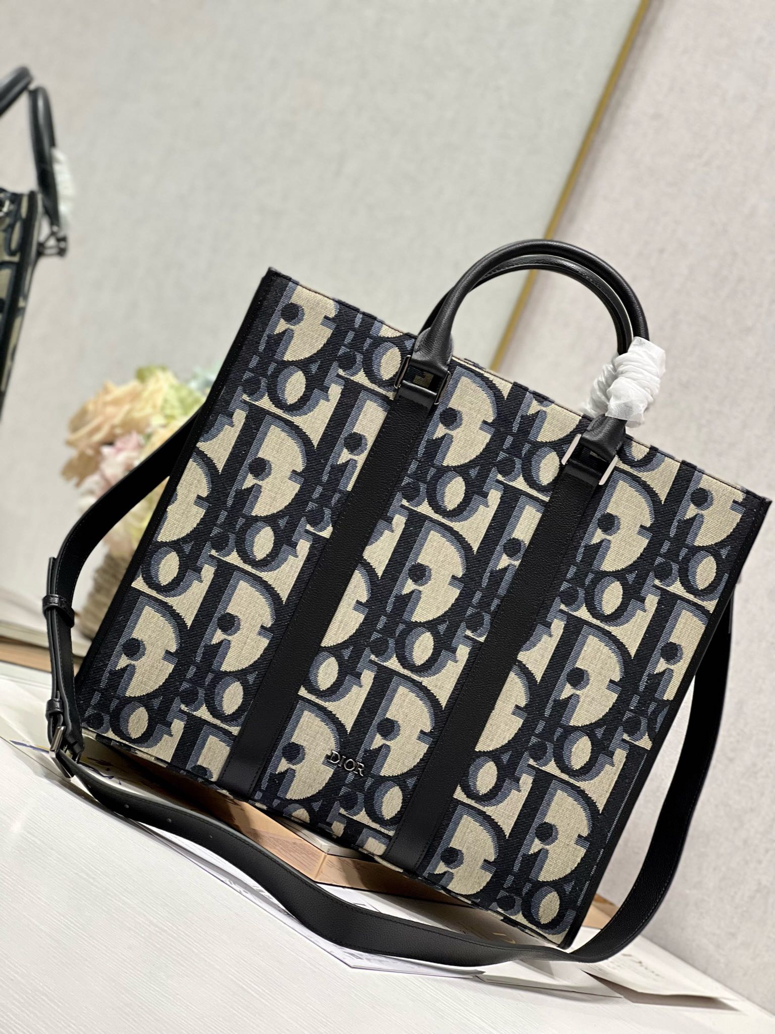 这款 East-West 手袋是二零二四春季男装系列新品,彰显经久不衰的高雅风格。采用米色和黑色超大 Oblique 印花面料精心制作,饰以 Dior 标志提升格调,全新演绎经典 Dior 图案。宽敞隔层可轻松收纳各种日常用品,搭配皮革手柄和可拆卸、可调节肩带,可手提、肩背或斜挎。