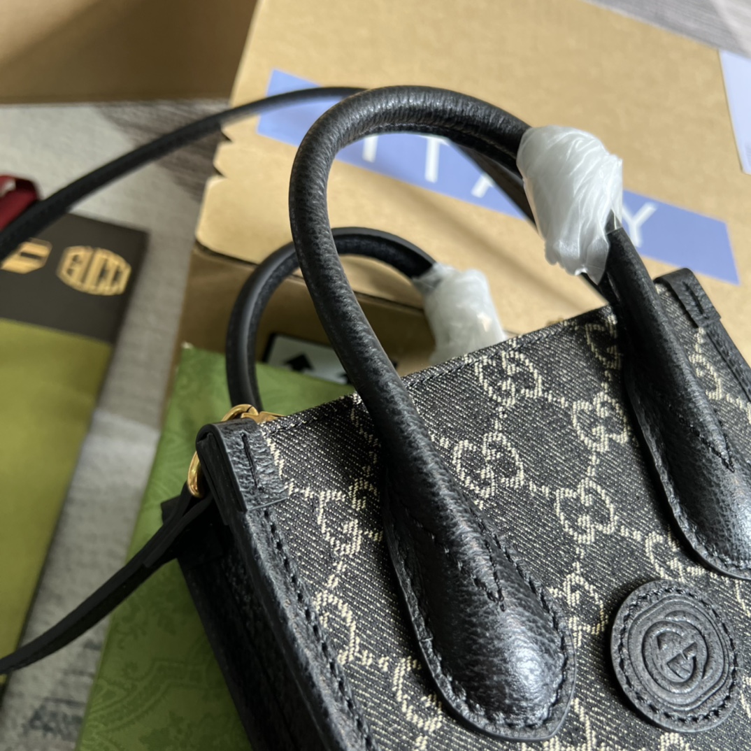 【Comes with full boutique green packaging】‼️Original factory denim jeans‼️GG Retro mini tote – I’m absolutely blown away by this mini tote! I’m so glad I was the first person online to get my hands on this bag; it’s totally my style. I’ve already teased this bag before because I love it so much. I already liked it, but seeing Song Yanfei carrying it made me even more enamored. Almost every brand has released this bag style in recent years, but I think GG still wins hands down in terms of quality. You can’t go wrong with this one; just buy it! Model number: 671623. Dimensions: 16*20*7cm. Color: Black denim jeans.