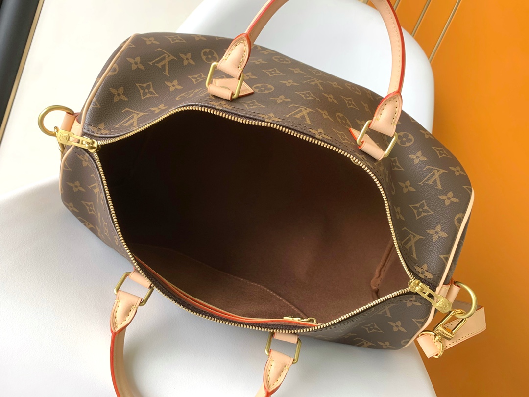 Exclusive real-life photos of the Speedy Bandoulière 40 MY LV HERITAGE. The M41110 Speedy 40 handbag, crafted from Monogram canvas, features classic Louis Vuitton design. Luxurious cowhide leather trim and multiple carrying options add a touch of style. Size: 40 x 25 x 19 cm