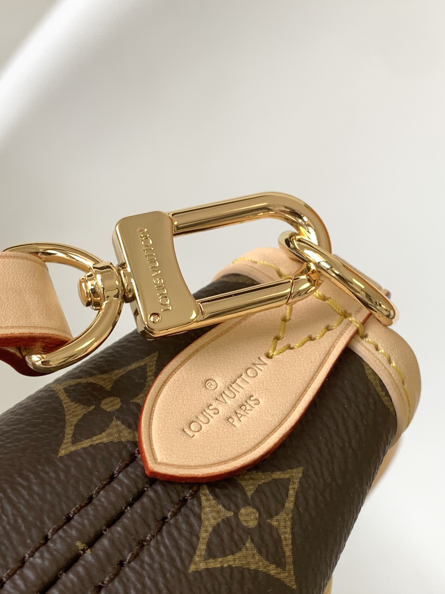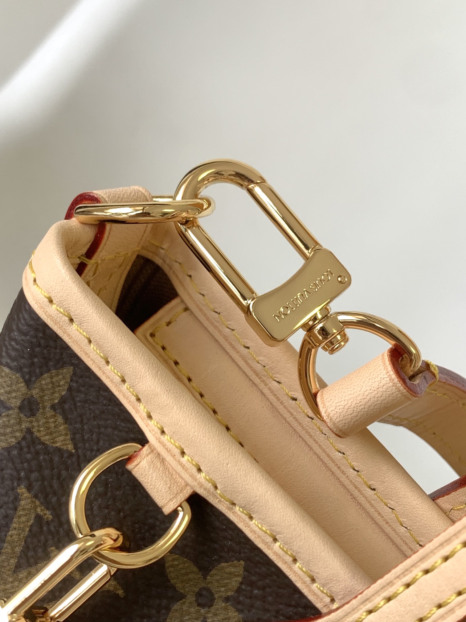 M46705 (Leather shoulder strap) This Neverfull BB handbag combines classic design with iconic details. Crafted from Damier Ebene canvas with a colorful fabric lining and cowhide leather trim, it’s spacious yet not bulky. The drawstring sides create a trendy look, while the relaxed fit offers a casual feel. It features slim, comfortable handles for shoulder or elbow carrying. The detachable handle can be used as a clutch or pocket. Detailed specifications: 24x14x9cm (Length x Height x Width)