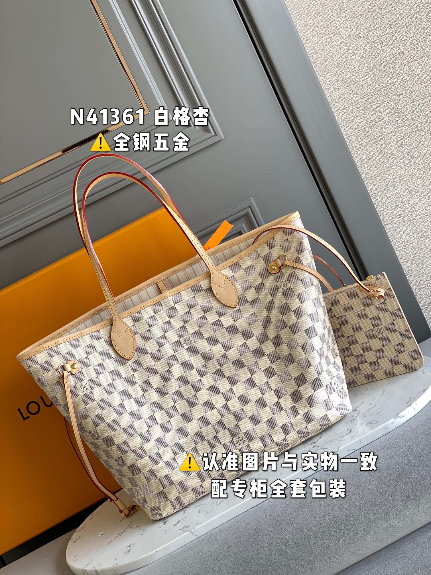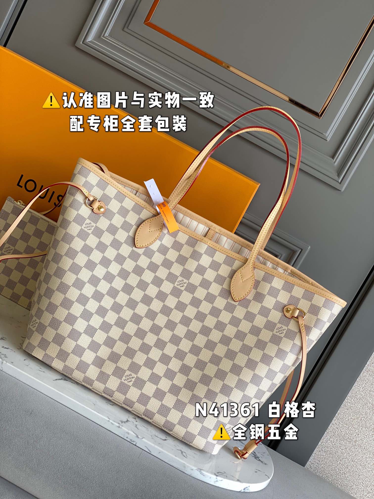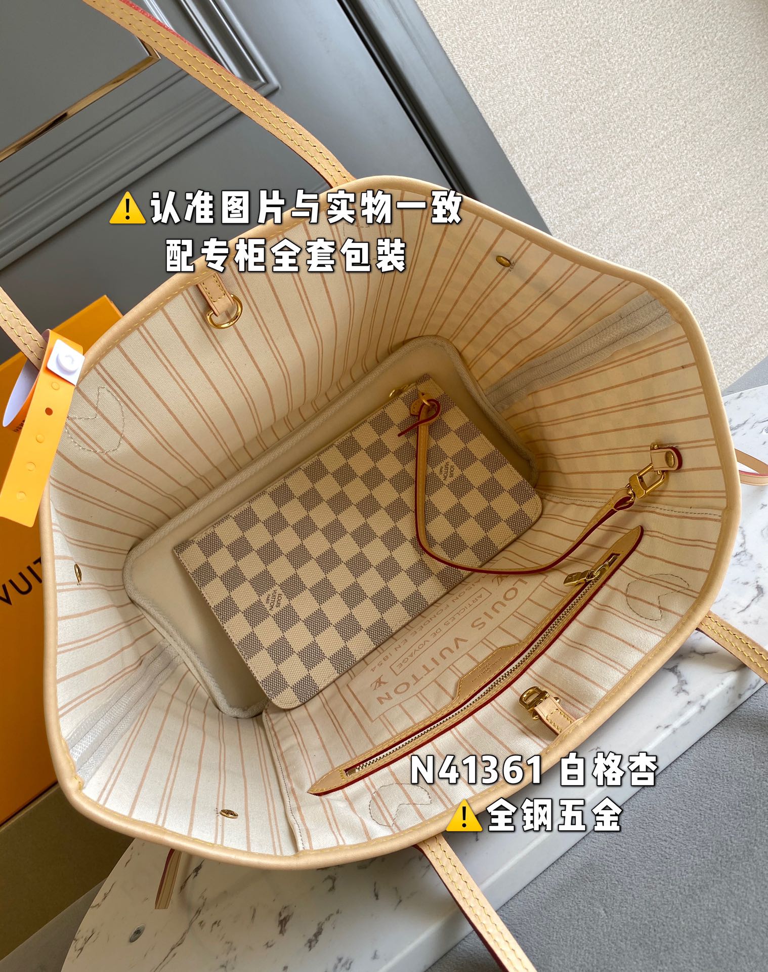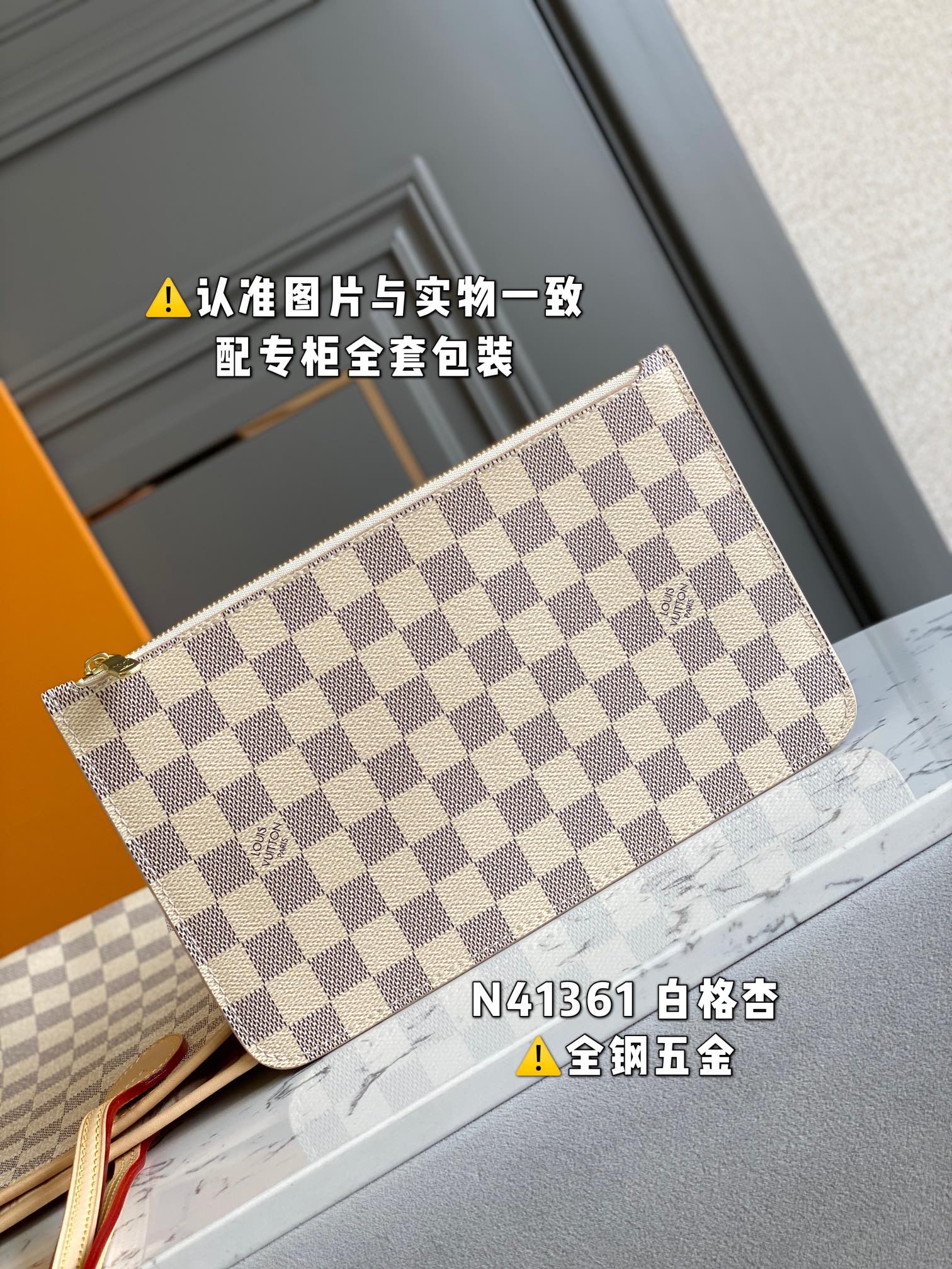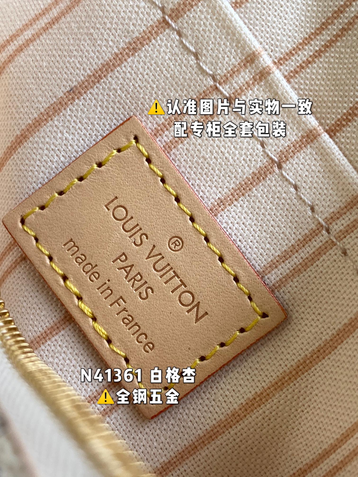 【Premium Original】N41361 White Checkered Apricot Leather is made of Italian Grade A leather. Its quality is evident in the hardware, fabric, craftsmanship, edge finishing, and overall production. It is a Grade A product, identical to the picture, and comes with full packaging. Dimensions: 32x29x17CM